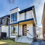 • The juxtaposition of traditional and modern elements establishes the home as a standout in the Leaside neighborhood.